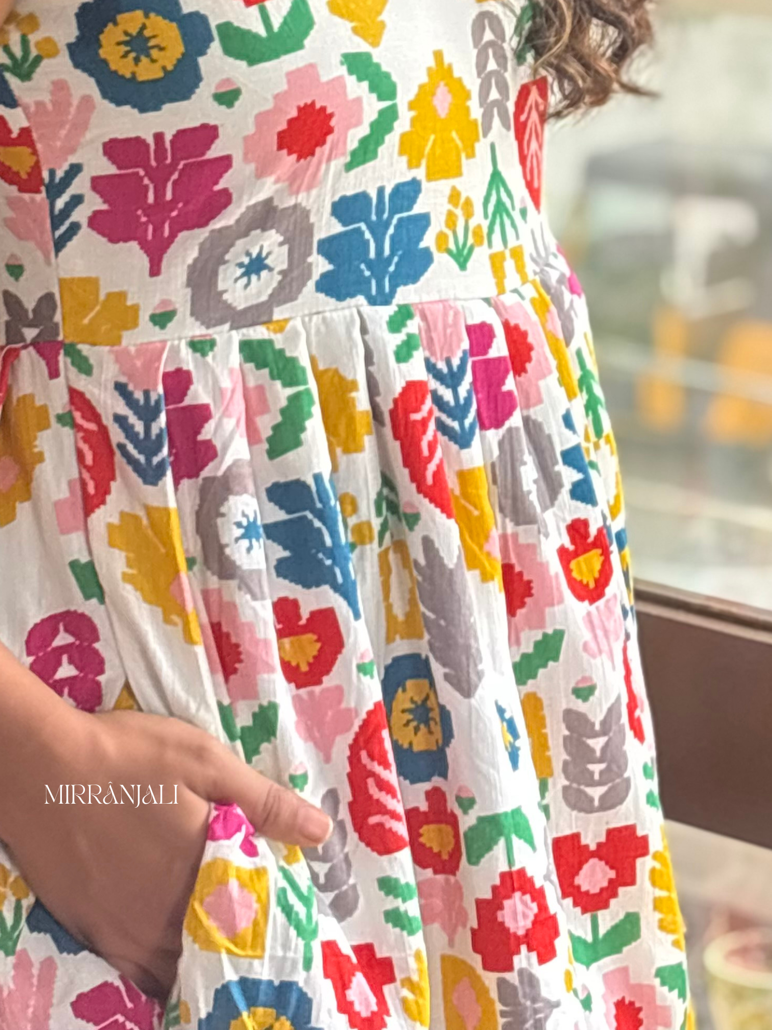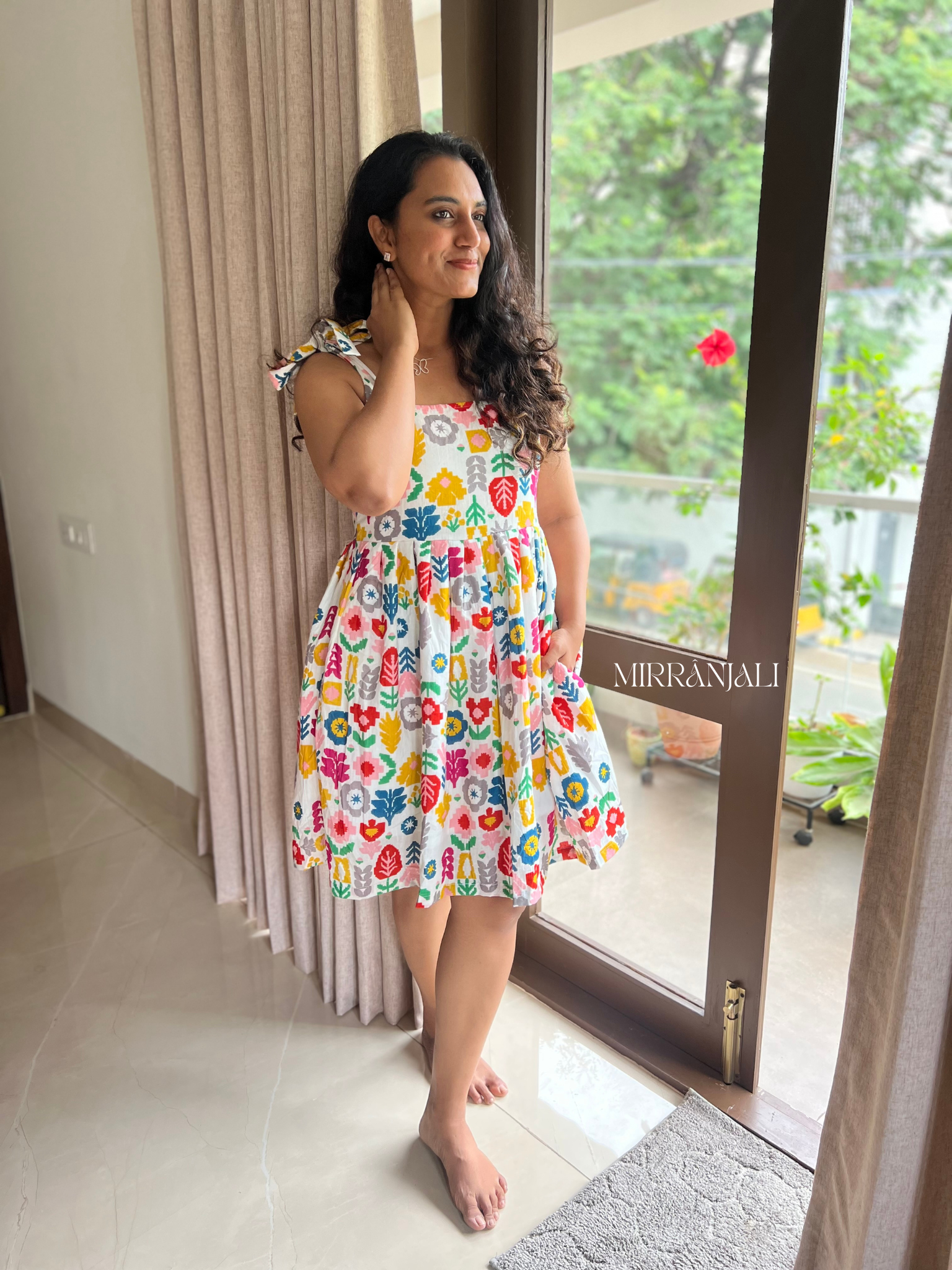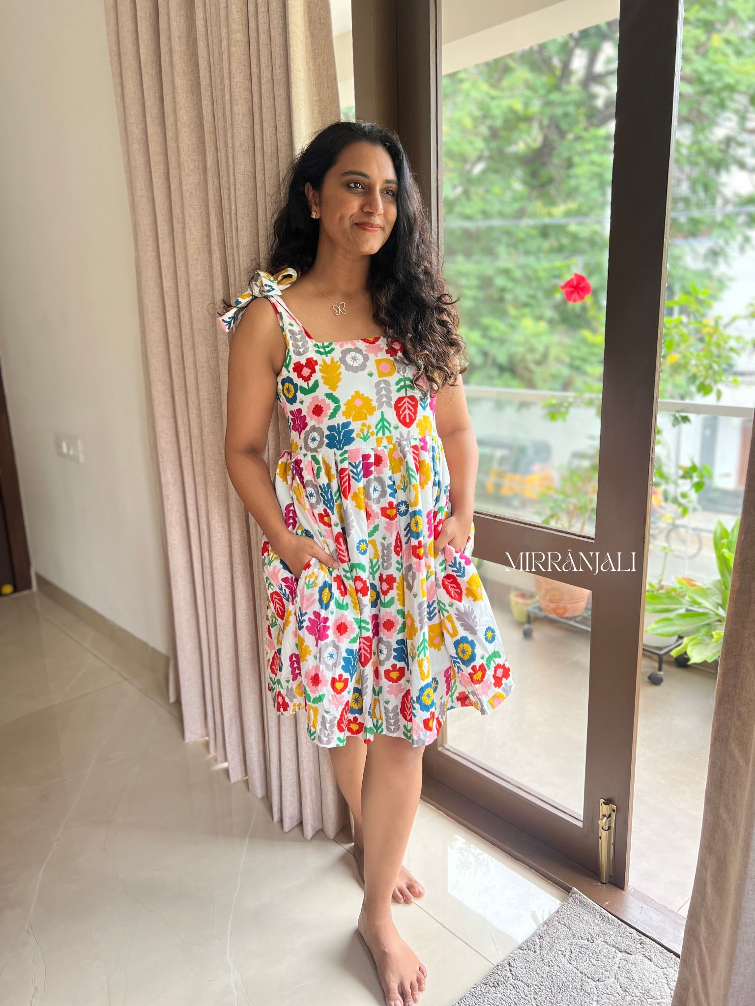 Bright and airy in light white, this pleated short dress keeps you cool and comfortable. Non-transparent, feeding-friendly, and complete with pockets, it’s made for sunny days and easy outings.