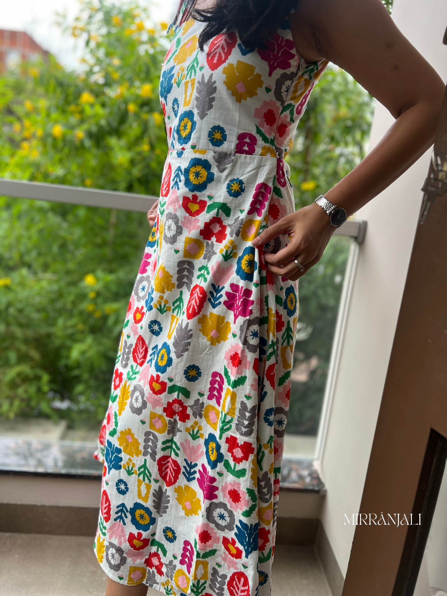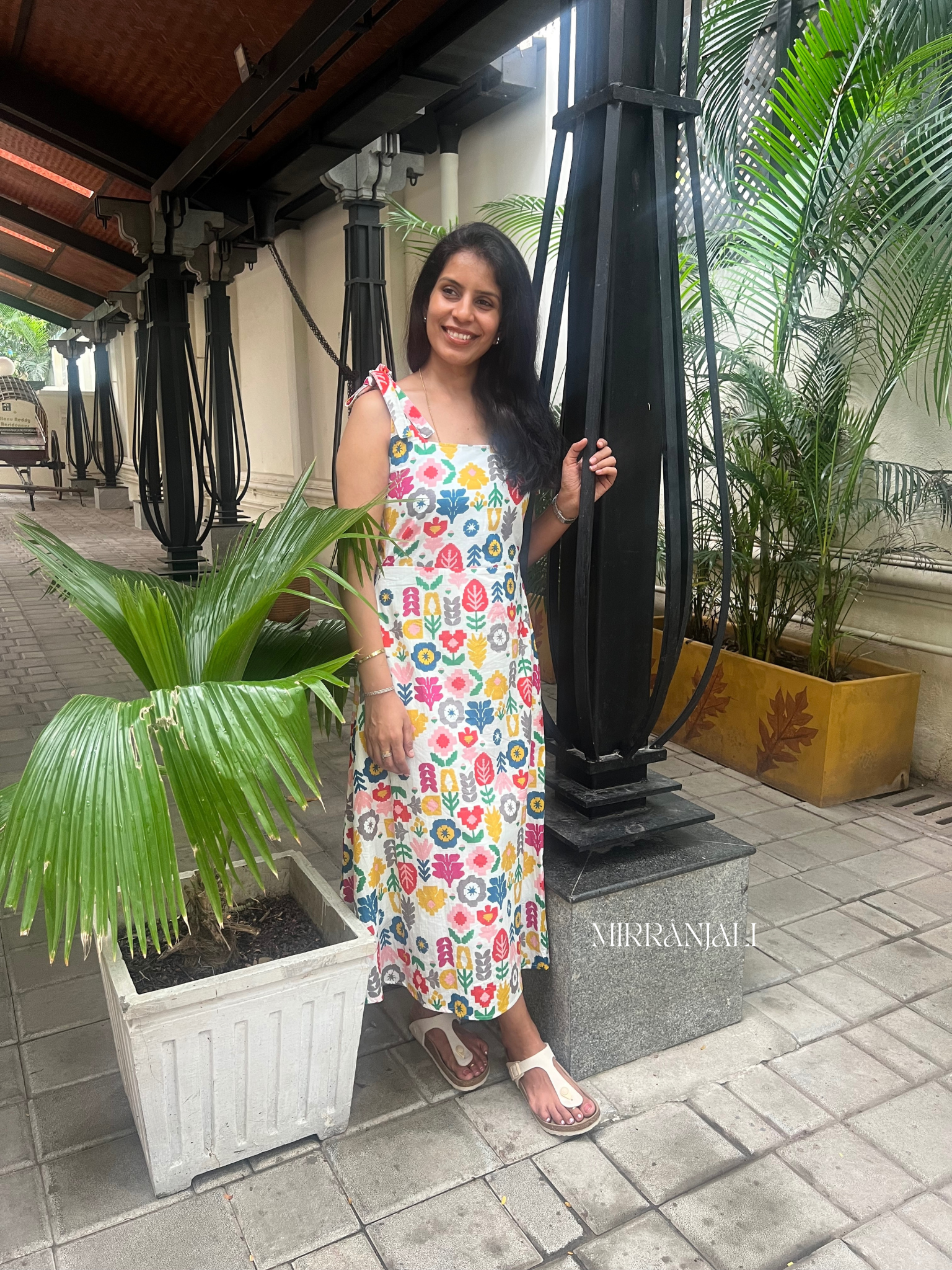 Fresh and graceful in light white, this pixel-inspired cotton dress is made to keep you stylish and at ease. The adjustable knot detail at the neckline adds versatility, while the two comfortable pockets make it as practical as it is chic. Feeding-friendly and breezy, it is perfect for sunny brunches, holidays, or a relaxed day out.