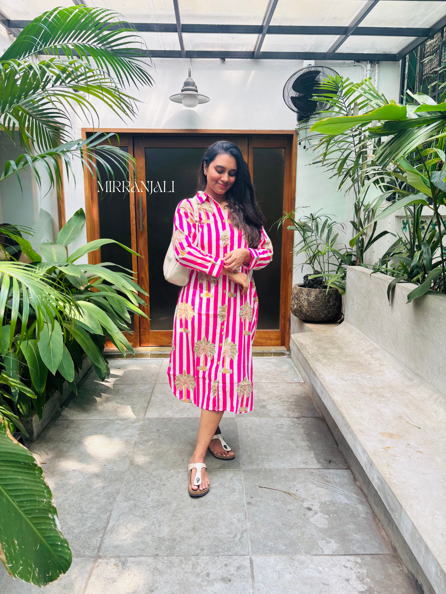 Playful, feminine, and easy to wear. The Pink Palm Shirt Dress brings together comfort and colour in the most effortless way. Made from breathable cotton, it’s a cheerful pick with 2 pockets for warm days, holidays, or when you just want to feel bright and beautiful.
